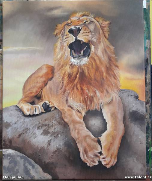 Marija Banha -  Yawning lion, oil painting on canvas
