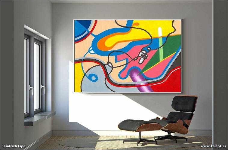 Rámováno: RÁMU NETŘEBA - velkoformátový abstraktní obraz působí bez rámu dobře