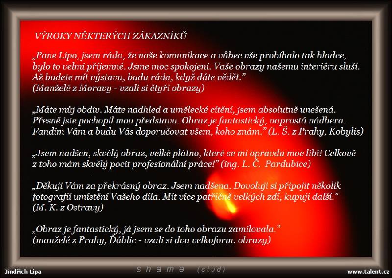 EN O autorovi Výstavy a sbírky Bibliografie a filmy ABSTRAKTNÍ OBRAZY (137) ABSTRAKTNÍ OBRAZY na zakázku (154) velkoformátové OBRAZY - Kolekce VHLEDY (6) AFFECTION /HNUTÍ MYSLI/ - abstraktní fotoobrazy (71) PERFORMACE /fotografie/ (13) ATYPICKÉ ABSTRAKTNÍ OBRAZY (10) KOLÁŽE (15) KRESBA (4) KRESLENÝ HUMOR (1) GRAFIKA (= propagační materiály autora) (13) DESIGNOVÉ KOBERCE STYLE (15)