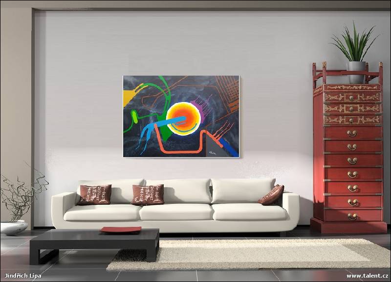 Rámováno: RÁMU NETŘEBA - velkoformátový abstraktní obraz působí bez rámu dobře