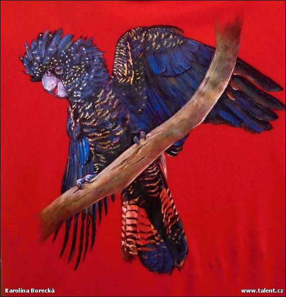Karolína Borecká - Kakadu havraní - malba na tričko