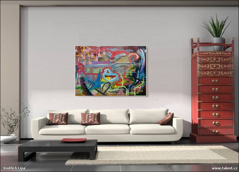 Rámováno: RÁMU NETŘEBA - velkoformátový abstraktní obraz působí bez rámu dobře
