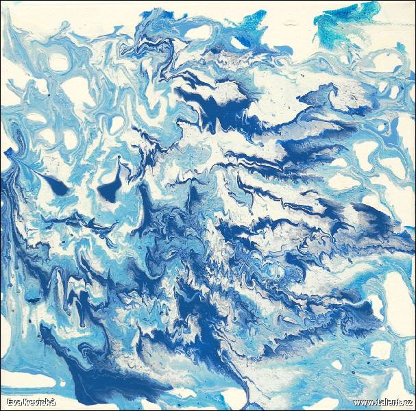 Popis: Abstraktný obraz maľovaný akrylovými farbami. Obraz netreba rámovať. Dielo je súčasťou kolekcie Bielo-modrý svet.
