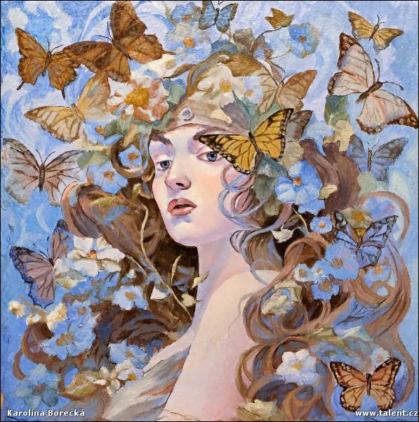Karolína Borecká - Žena a květiny na břidlici