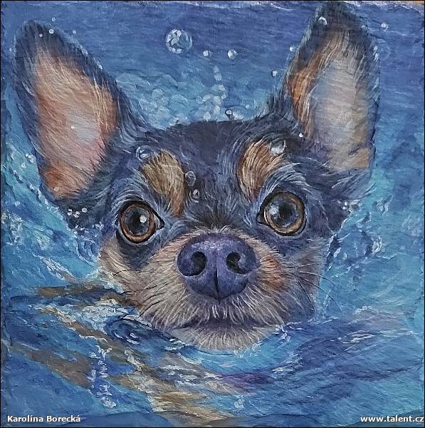 | Popis: | Malba na zakázku. Akrylové barvy na kuchyňském prkénku. |